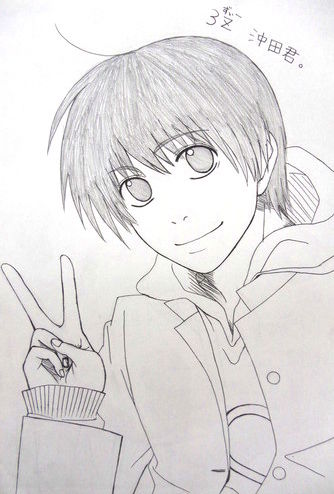 こんにちは。最近の夜はPCの調子が悪くてなんかもう無理で嫌になります。しかもなんかいろんな機能が変わってて、どっからどう手を付ければいいのかわからない状態。イライラ。 昨日今日は大会で遠くへ行く馬術部の友人に頼まれてワンちゃんの散歩をしました。しかしこいつがなかなか強情で、私が帰ろうとしても、「まだ散歩してたいワン。」とばかりになかなか帰ろうとしてくれないんです。なので私はこの二日間、2・3時間も炎天下の中を歩くはめになりました。なんか、2時間を超えると頭がぼうっとして目の前に幻覚が・・・やたらとバナナをこれみよがしに食べ続けるちっさいおぢさんが見えました。 さてさて昨日の夜UPできなかったので、今日は二枚UPしようと思います。まずはカメラ目線沖田くん。 PCで色塗ろうと思ってたんだけど面倒くさくてやめちゃった。沖田君が(さわやかに)笑うのってあんまし見ないような気がして描いてみた。いつのまにか彼の歳を超えていました。こうしてアラサー、アラフォーと気づかないうちに歳をとっていくんだ私にはわかる。心は永遠の10代でいたいなー(切実。) 次は銀さんの男泣き。けんしろう?もうやっちゃったよね。突っ込みどころ満載だよね、うん。「スラムダンク」とか「バカボンド」とか「リアル」とか、林がもっとも尊敬している漫画家さんなのですが、何を血迷ったのか「絵を真似して銀さんを描いてみたい!」と思ったのがそもそもの間違い。まぁいいや楽しかったし。井上さんは銀さんの髪形をどういう風に描くんだろうと想像すると面白いです。 明日から車の免許を取るため教習所で合宿します。とれるのかなー?とれたとしてもペーパーになりそうだから不安だなー。・・・応援してください笑 というわけでまた二週間程度更新が滞りそうですが、まぁ、あの、それではまた。