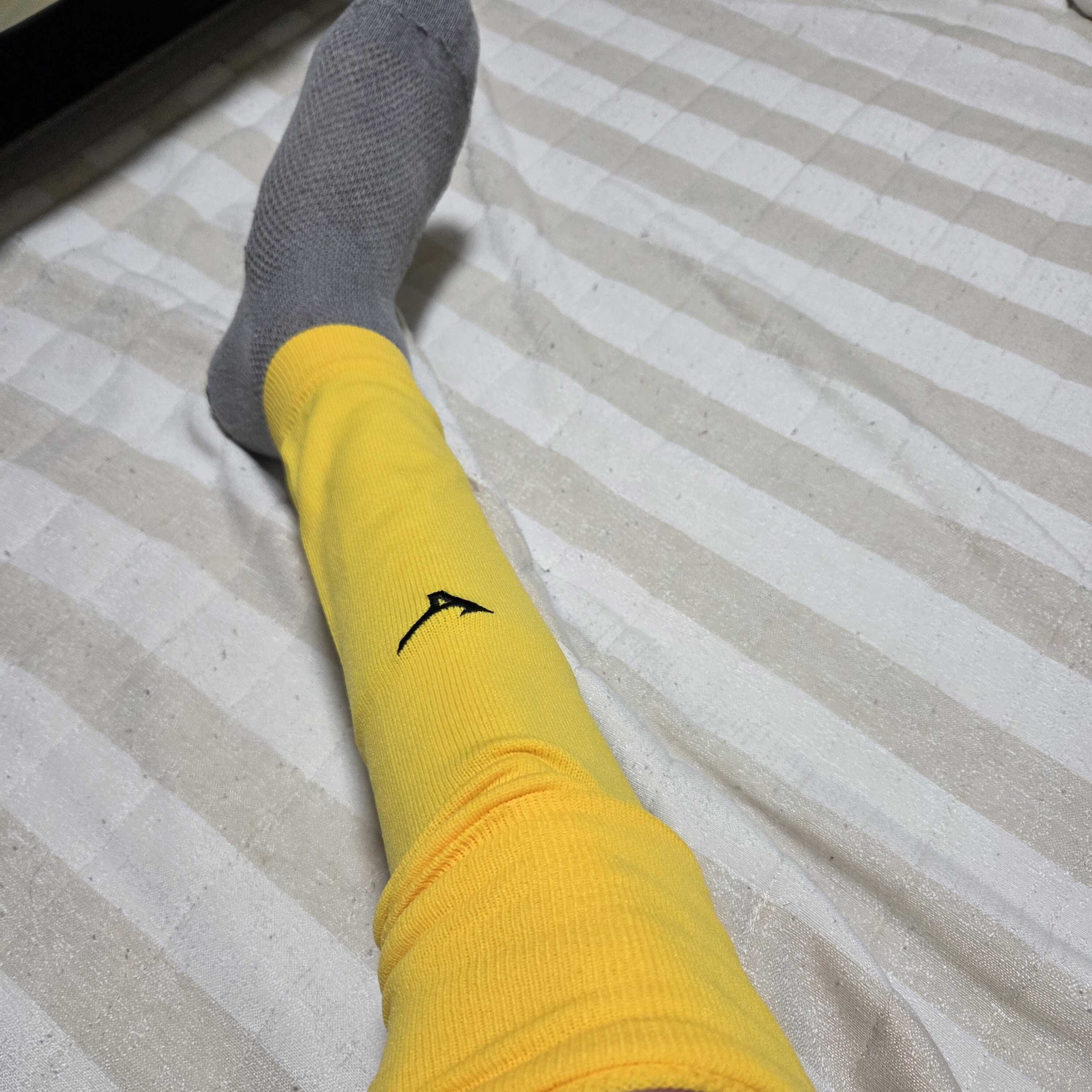 普段の仕事用のスラックスの下には派手な黄色のカーフソックス