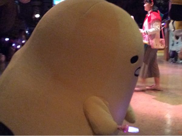 ミラクルギフトパレードの直前には、ダンスの練習とミラクルライトの販売が行われ、ぐでたまが、ときにはたまご寿司・・・ときには「いわゆる」ピーナッツ姿で登場しますグリーティングのメンバーにいないぐでたまなので、とても貴重な時間です昨日は、ピーナッツ型のぐでたまが登場しました。ちょうど目の前で、「力つきて動けない」状態になったらしく、長い間、そばにいてくれて幸せでしたこの状態でフリーズ何度もお姉さんに励まされて立ち上がるようにうながされるのですが、そのたびにヘロヘロ~と倒れてましたその後のダンスの練習タイムでは、映像にかぶりつき…カンペを読んで退場していきましたミラクルギフトパレードでは、ぐでたまがカンペを読んで退場していく場所をぐでぐでママの「定位置」にしていますパレードが終わったら、混雑を避けて「ぐでたま・ザ・ムービーショー」にも行けるのでお気に入りです昨日は、ぐでたまも超接近してくれましたが、他のキャラクターもすごく近く感じました。クロミちゃんやマイメロディちゃんとパレード中にハイタッチできたのは、初めてだったので。気のせいかしら(キティちゃんは絶妙の距離感で通り過ぎていくのはいつも通りでした)Twitterでもつぶやき中です➡@gudeugde_mamaランキングに参加しています。クリックお願いしますにほんブログ村人気ブログランキングへ