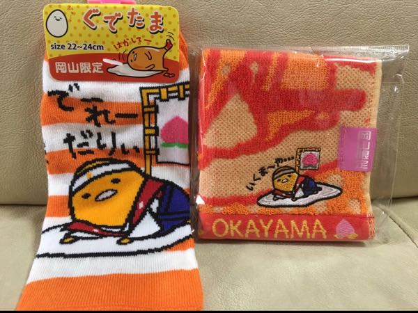 岡山県のご当地モノのジャガードタオルと靴下を教えていただきました(こちらも、情報&お写真はまりさんからいただきました)岡山といえば、桃太郎全くやる気のないぐで桃太郎が、靴下とジャガードタオルで登場「いくまーや」は岡山の方言で「行かないだろう」だそうです靴下で「で~れ~だりぃ」とつぶやいてからの➡タオルで「いくまーや」とつながっていますねジャガードタオルもたくさん出てきましたね。カテゴリー別の「ご当地」で一覧が見られます。大阪に帰省した時に購入したものの他、ネットでは北海道と大分の取り扱いがあります(大分はデザイン違いのものもあります)次の記事で広島のジャガードタオルもご紹介します情報もお待ちしております【北海道限定】ぐでたま ジャガードタオル【ご当地ぐでたまグッズ ご当地 サンリオ】【大分限定 ぐでたま】ジャガードタオル【籠入り・温泉卵】 G.T ぐでたま グッズ Gudetama Mascot Egg サンリオ ぐでだま プレゼント ギフトTwitterでもつぶやき中です➡@gudeugde_mamaランキングに参加しています。クリックお願いしますにほんブログ村人気ブログランキングへ