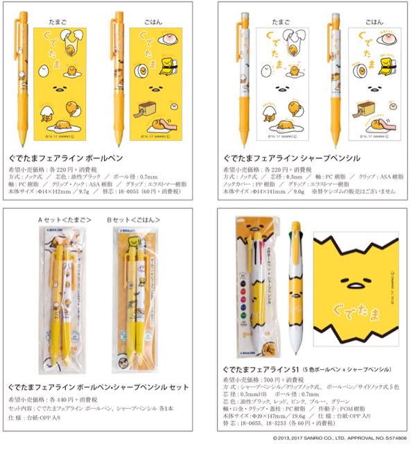 セーラー万年筆のフェアラインシリーズには、ハローキティ、マイメロディ、リトルツインスターズが既に発売されていますが、ぐでたまもラインナップに参加することになりました(発売日 1月29日)絵柄の説明が「たまご」「ごはん」というのに笑ってしまいましたベーコンのおふとんをかぶっているぐでたまも、そういえば「ごはん」なんですね~セーラー万年筆【ぐでたまフェアライン51】(5色ボールペン+ シャープペンシル)Twitterでもつぶやき中です➡@gudeugde_mamaランキングにも参加しています。クリックが励みになりますにほんブログ村人気ブログランキングへ