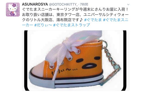 中居正広さん(もとSMAP)が姪っ子さんとお揃いでつけているのが、ぐでたまのキーホルダーだそうですねぐでたまをたくさんの人に知ってもらえるチャンスです数日前には、「どんなキーホルダーだろう」という感じでしたが、今は特定されたんでしょうか残念ながら、ぐでぐでママは確認できていませんが、多くの方が「ぐでたまスニーカーキーリング」を探されているようです。あすなろ舎さまのツイッターでもなお、在庫状況についてはFB、Twitterでお知らせしますので、店舗への電話でのお問い合わせはご遠慮くださいとのことです。マナーは守りたいですね【2017/01/31 追記】あすなろ舎さまのツイートによると予定販売数が終了し、今後の入荷も未定とのことです。中居さんパワー すごいですねTwitterでもつぶやき中です➡@gudeugde_mamaランキングに参加しています。クリックお願いしますにほんブログ村人気ブログランキングへ