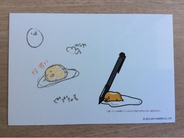 ぐでたまからポストカードが届きました前回は宛名だけでしたが、今回は宛名の下にぐでたまからのメッセージが書かれていましたぐでたまっぽくないメッセージは「ゴーストライター」に違いありませんでも、うれしいイラストは前回と同じでしたこちらがメッセージもちろん、ずっと応援するよ~Twitterでもつぶやき中です➡@gudeugde_mamaランキングに参加しています。クリックお願いしますにほんブログ村人気ブログランキングへ
