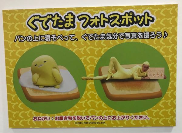 東京 西武池袋本店に引き続き、大阪の大丸梅田店でも「ぐでたまてん」が開催されました(7月18日~30日)行くことはかなわなかったぐでぐでママのかわりに、お友だちからステキなお写真をいただきましたので、ご紹介します東京との大きな違いは、フォトスポットふかふかパンの上にこんなに大きなぐでたまが鎮座してるなんて夢みたい一緒にぐでぐでしたかったなぁいろいろな方向から おたのしみくださいこちらは、ぐでたまと一緒にフライパンで調理さてるように見える3Dフォトスポット最新の技術ってすごいですねいいねのクリックをしていただけると嬉しいですにほんブログ村人気ブログランキング最新情報はツイッターでつぶやいています ぜひそちらもフォローお願いします