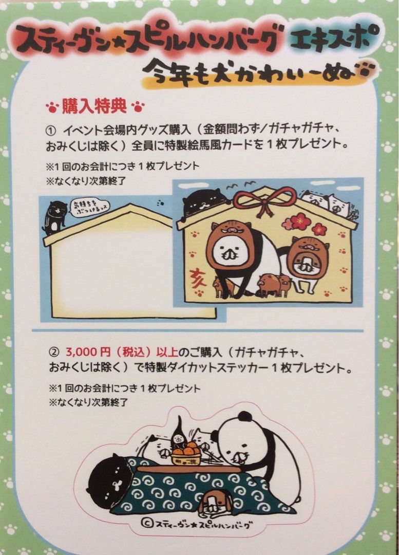 新宿丸井 B1F イベントスペースで スティーヴン・スピルハンバーグ エキスポが開催中ですお友だちに教えてもらってから、犬を飼ったこともないのに すっかりスピルハンバーグさんと梅ちゃんのファンになり、単行本も先日購入しました鳥居も絵馬奉納ブースもあって お正月の雰囲気たっぷり『幻の』鼻水バージョン鼻しおりも無料で配布されていました 感謝おみくじも用意されていて・・・おみくじの箱のイラストが最高✨おみくじは・・・「凶」でしたでも クロネコヤマモトさんのファンなので 「当たり」ですフォトスポットでは「写るのはちょっと…」と伝えたところ「そういう方のために お面をご用意しております」と熱いエールをいただいたので パチリお礼を伝えると「そのために わたくしたちスタッフはいますので、ご遠慮なく」と とても気持ちの良い対応をしていただけました スタンプコーナーも楽しめますよ~新宿限定のスタンプがあるということは、ほかの場所でも開催されるのでしょうか【中古】その他コミック パンダと犬 / スティーヴン★スピルハンバーグパンダと犬 メタルキーホルダー [3.さっさ さっさ]いいねのクリックをしていただけると嬉しいですにほんブログ村人気ブログランキング最新情報はツイッターでつぶやいています ぜひそちらもフォローお願いします