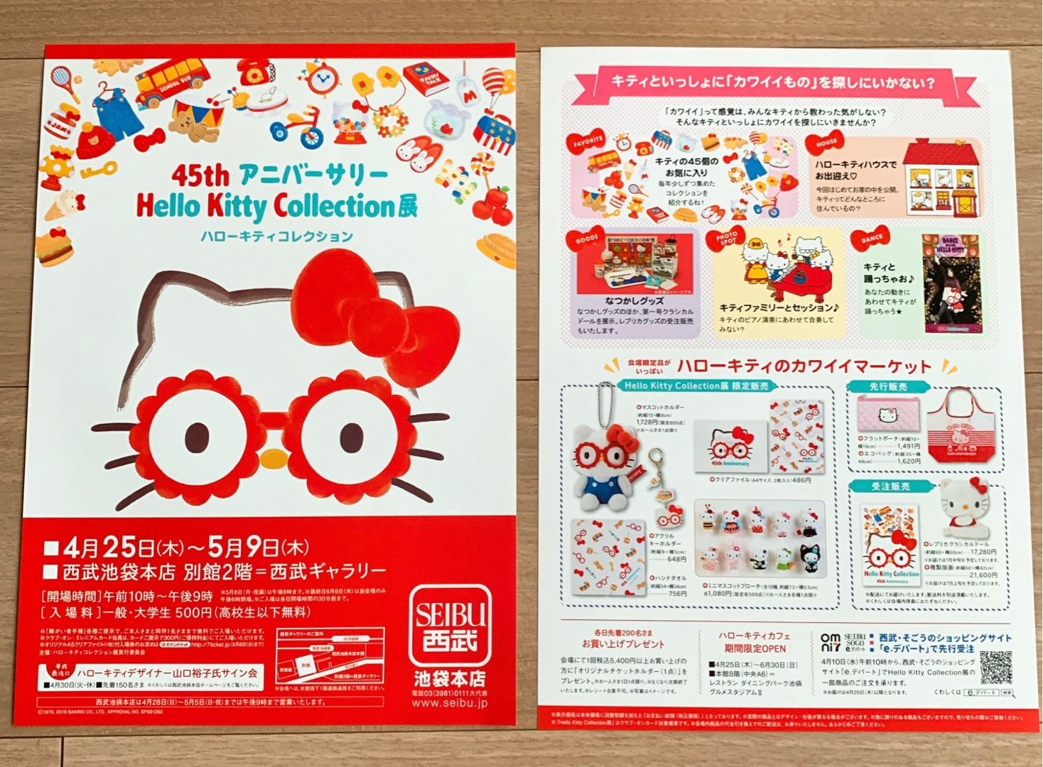 西武池袋本店で開催の「45th Hello Kitty Collection展」に行ってきました開催期間が終了しましたので、ご紹介します【概要】場所:西部池袋本店 別館2階 西武ギャラリー期間:4月25日~5月9日リーフレットがこちら↓スタッフの方もこのキティちゃんの眼鏡をかけての接客で、なかなかのインパクトでした(笑)エントランス(外)(中)ぐでぐでママも宝物にしているミニチュアシリーズが展示されていました✨まさにこんな状態で販売されてて、長い時間 立ち止まって見ていたのがなつかしいです「くまさん」見つけられますか~キティのおうちが再現されていました現在のハローキティのデザインナーである山口裕子先生が選ばれたきっかけになったイラストを立体化したのがコチラそれぞれのキャラクターに個性やストーリーを持たせた画期的な作品ということで、ショップでもこのイラストの商品が販売されていましたショップでは、コレクション展限定商品がた~くさん45周年を記念した商品なども販売されていました45年の歴史は並べると壮観で感動しますねビックリしたのがこのガチャ45種類って・・・コンプリートへの道は遠そうですよねチケットをセブンイレブンチケットで購入すると、当日券と同じ価格でB5サイズのクリアファイルをいただけました右側のコースタ2種は4か所を回るデジタルスタンプラリーでいただけましたランキングに参加しています。アイコンをクリックしてもらえるとうれしいですにほんブログ村人気ブログランキング最新の情報はツイッターでつぶやいています。ブログは事後報告で、イベント等は終了してることも多いので、ぜひTwitterのフォローをお願いします ⇒ https://twitter.com/gudegude_mama