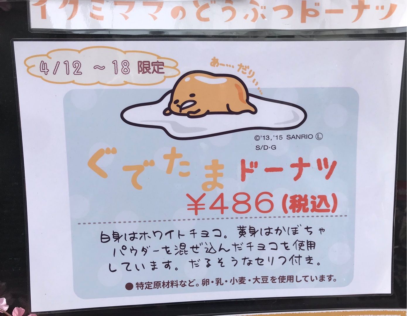 どうぶつドーナツで有名なイクミママとぐでたまがコラボしたドーナツが、元住吉本店限定・期間限定で発売4月12日~18日と短期間ですので、気になる方は早めにどうぞお友だちがはるばる行ってきて、写真をくださいましたパッケージのウラにも ちゃんといますランキングに参加しています。アイコンをクリックしてもらえるとうれしいですにほんブログ村人気ブログランキング最新の情報はツイッターでつぶやいています。ブログは事後報告で、イベント等は終了してることも多いので、ぜひTwitterのフォローをお願いします ⇒ https://twitter.com/gudegude_mama