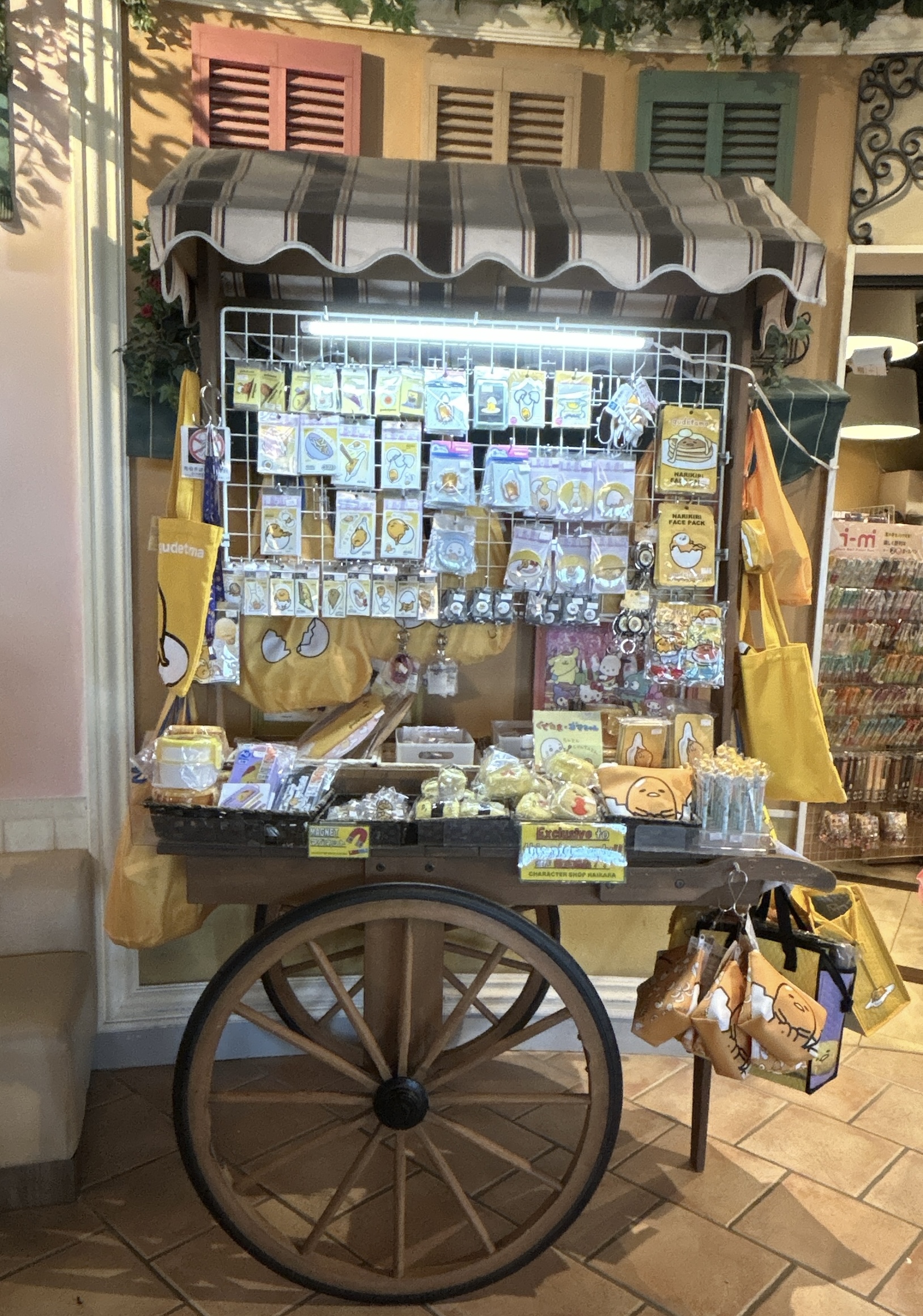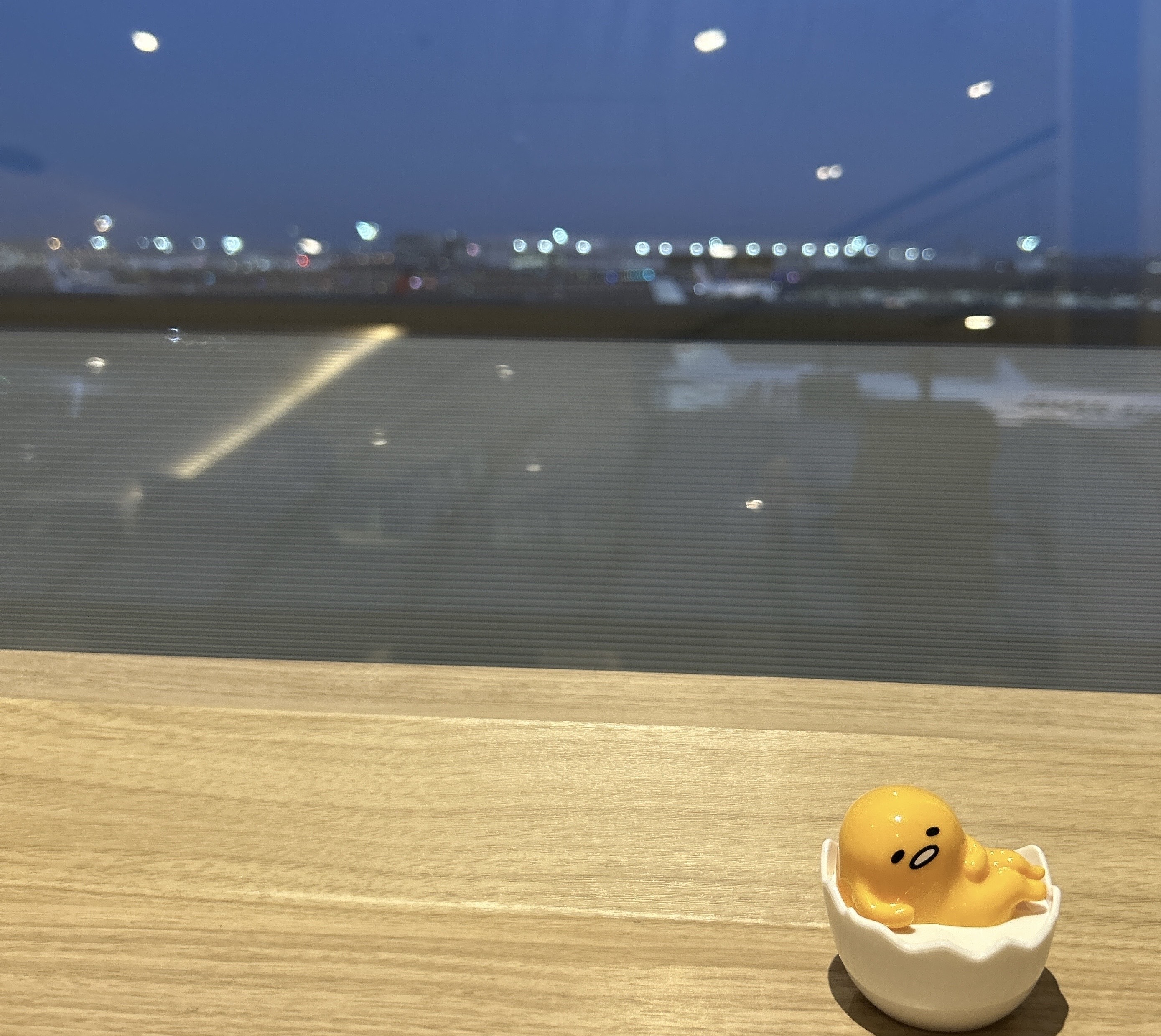 羽田空港第3ターミナルにあるキャラクターショップHAIKARA さんには、ぐでたまの商品ワゴンが用意されています‼️ショップ限定のカバンやポーチも販売されていて、良きお店✨️お店の横の小窓からもチラリ|´︶`*)チラリ店舗外の看板にも ぐでたまがいました❣️