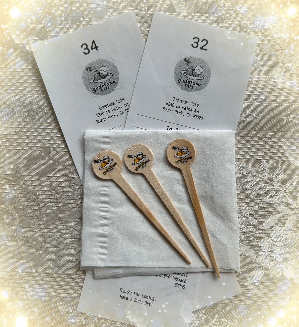 ハンバーガーに刺さっていた ぐでたまのピックは永久保存‼️レシートもカワユス(*´ω`*)