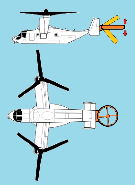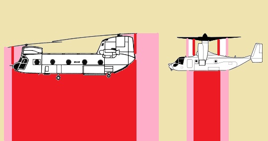 オスプレイですよ。現状の機体も電子化を推し進めれば、なんとか実用にはなるんですけどね。多分、Block4位に進化してようやくだろうね。んで、オスプレイの何がいけないのか?まずひとつオスプレイのローターは飛行機よりは大きいが、ヘリコプターよりは小さい。そのためジャイロ効果が小さく、安定性が低くなる。ふたつオスプレイのローターは機体の左右に付いています。左右の安定性はありますが、前後の安定性は低いです。公開されている動画でも、頭とお尻を上下にふらふら揺らしていますね。みっつオスプレイのローターは小さいので、貨物を安定して格納できるエリアが狭いです。ただでさえ安定性の低い機体です。荷崩れを起こしたら機体の姿勢を維持できません。更に機体デザインが低速で揚力を稼げるようには出来ていないので、ある程度の高い速度がないと、ローターを可変できません。可変中に突風など、わずかの大気変動がおこるだけで、機体は揚力を失います。貨物を安定して格納可能なエリアの図 そもそも、基本デザインが20年古いよね。ティルトローター機って実は、今度退役するタンデムローター機であるチヌークと、アイディア的には同期なんだよね。 完成度の高いティルトローター機のキモは、スタビライザー。ヒントはテールローター。マットジャイロに学べ!ですよ。