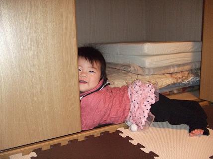 クローゼットを開けていたら叶羽が中に入っていきまいた「かのは~」と呼ぶとママにきずいてにっこり「おいでおいで~」進入をあきらめて戻ってきてママの所にむかってきてくれました