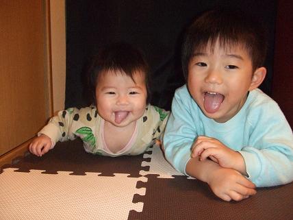 最近の叶羽のブームはあっかんべ~ニコニコのご機嫌の時にはなぜか舌を出して愛想をふりまいていますママのまねっこであっかんべ~をしたりして遊んでいます今日は虹也と一緒にベ~