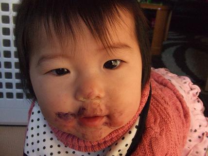気持ちのイイお天気だったので叶羽には一人で遊んでもらっていてその間にお掃除していました一時間ぐらい一人で遊んでいたのでいい子だなぁと思い叶羽に近寄ったらビックリ口と手が紫色になっていました何事だと思ったら昨日虹也が保育園で絵具で葉っぱを書いた紙で遊んでいたみたいですまったく気が付かずその紙で遊んでいたみたい色はすぐにおちたのでよかったですがほっときすぎてごめんね一人遊びが上手になったからついつい