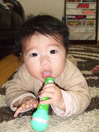 一番のお気に入りのお尻拭きのケース見つけると一生懸命腹ばいで向かっていきます捕まえるとちゅうちゅうしてよだれまみれになっています今ではイロイロなところに自分で行けるようになったので叶羽も楽しいみたい