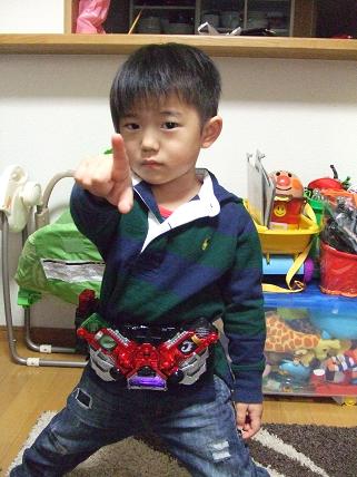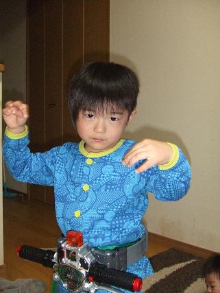 クリスマスプレゼントでパパに買ってもらった仮面ライダーWの変身ベルトでパパと対決中です結構激しくやりあっているので痛そうなときもでも、虹也はパパと遊べるのが楽しそう これからパパとパパの友達と三人で銭湯にいく虹也です