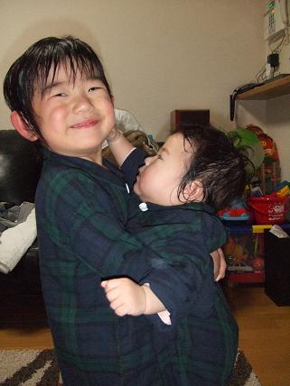 保育園から帰ってくるとご機嫌の虹也いつもはすぐに仮面ライダーごっこをして遊びだすのに今日は叶羽と一緒に遊びだしました「ママ、叶羽抱っこしたい」と言って抱っこしてもらうと叶羽は「キャッキャ」言って楽しそうに遊んでいました虹也のリクエストで写真を撮ってみましたぁ