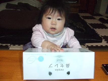 ティッシュの箱をタイコのようにバンバンたたくのがマイブームの叶羽です机の上にティッシュ箱があるのを知っているのでつかまり立ちになり楽しく遊んでいますでも、気がつくとティッシュを食べちゃいます