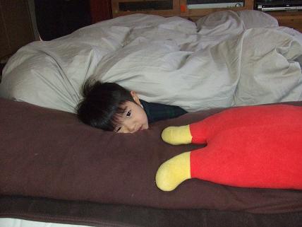 大丈夫だと思っていた虹也の熱があがってきました本人も辛そうでかわいそうお昼ごはんは食べることができたのですが夕方に全部もどしちゃいました夕飯も食べることができなかったのでゼリーやバナナを少し食べて病院でもらった薬を飲んでお布団の中でごろごろしてます眠るんだけど苦しいのかすぐに起きては「ママお腹痛い」と涙声を出して甘えん坊です 叶羽は今のところ熱もなく元気なのでこなまま何事もなければイイなぁ今日はインフルエンザのパパと虹也が一緒に寝ますパパは少しよくなり熱もだいぶ下がったのでお願いしました 明日にはちょっとはよくなるとイイね