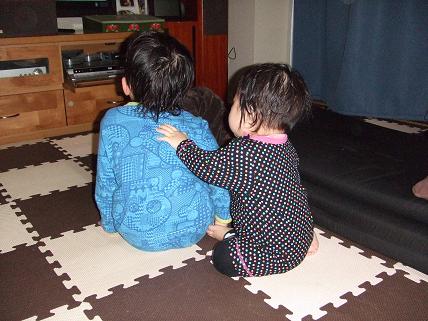 「ねぇねぇなっくんテレビばっかり見てないで叶羽と遊んでよ」「う~んちょっと待って」「ねぇぇぇぇぇ遊んでったら」 と会話しているみたいでしたでも叶羽が寄っていっても今日はテレビ気分の虹也は知らん顔でした