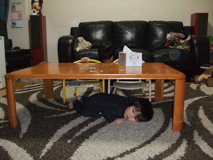 叶羽はなぜか机の下でゴロゴロしていますなに遊びあっ虹也がきたよ割り込んできた虹也の鼻に赤いものが先ほど鼻血を出しました