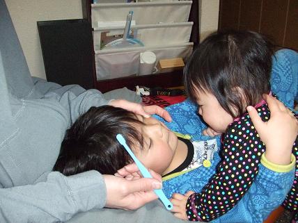 最近、叶羽は虹也が歯をみがいているとうれしそうによってきますなんだかとっても気になるみたい虹也もそれがうれしいのか「叶羽どうしたのなっくんがイイの」と話しかけています