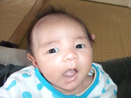 叶羽は保育園初日だったのですが連れて行ってすぐに園から電話がありました「叶羽ちゃん熱が38.5分あるのでお迎えお願いします。」朝計ったときは36.5分しかなかったのに九州に行って疲れが出てきたみたいですちょっと顔が疲れているかと思ったのですが「叶羽~」と笑いかけるとこの笑顔