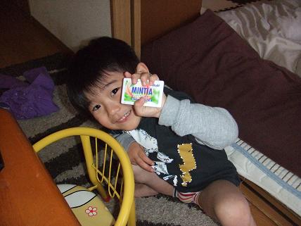 熱も下がって元気になった虹也でも、膀胱炎がぜんぜん良くならないので保育園はお休みしました大好きなミンティアを食べてうれしそう 膀胱炎が早く良くなるとイイね