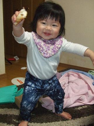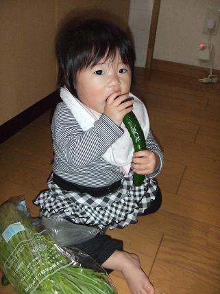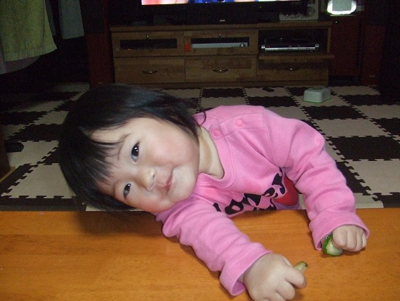 ごはんの仕度をしていたら足元でおとなしいなと思い見てみたらきゅりを口いっぱいほおばっていました「叶羽だめだよ」と言うとこの笑顔この笑顔をされたらこっちまでニッコリしてしまいます好きなだけ食べなさ~い