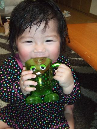 虹也の飲み終わったコップを取ってチュウチュウしてます同じようにコップで飲みたいのかなぁ?でも叶羽にはちょっと早いからもう少ししたら練習しようね