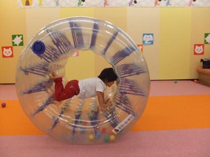 こんな遊具初めての虹也は汗だくで遊んでいました私がコロコロ転がしてあげると楽しそうに中で転がって「きゃ~わぁ~」と声を上げていました叶羽はまるでリスみたいでしたハイハイでがんばって動かしている姿が回し車をしているリスかわいい