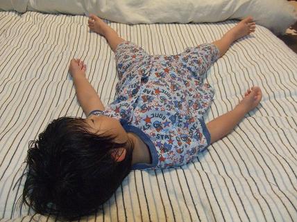 今日はお昼寝をしなかった虹也くんお風呂上りに布団の上で寝ちゃったのかと思ったら「なっくん起きてるよ~」とハイテンション変な技を覚えてだまされちゃいました次はないからなぁ