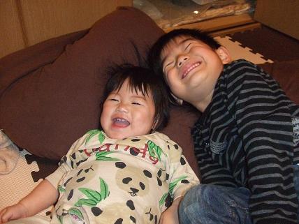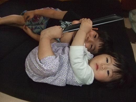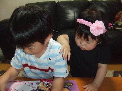 虹也が保育園から帰って来ると叶羽はニコニコ早速一緒に遊んでいます調子が悪いけど虹也がいると元気になれるみたい叶羽には一番のお薬なのかなぁ