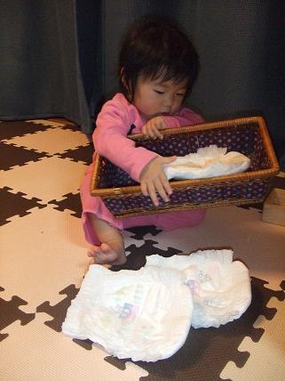 叶羽のマイブームはオムツを散らかす事です片付けても片付けても散らかしてくれます楽しそうにオムツを振り回していますオムツ置き場を考えなくちゃ