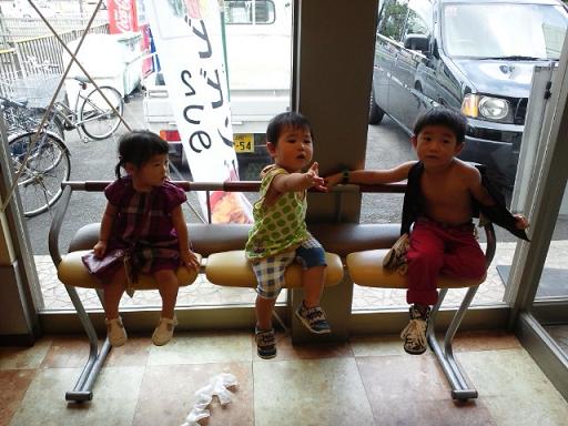 土・日曜でいとこのりっくんの所にお泊りに行ってきましたお昼ごはんを買いにお弁当屋さんでの3人仲良くいすに座って待っていましたお泊りの間ずっとはしゃいで遊んでいました厚さのせいもありみんな汗びっしょりで楽しそうでした夜は疲れて早めに眠りにつくのかと思ったら本を読み出しました。子供の体力はすごいです叶羽はよっぽど疲れていたのか帰ってきてお風呂に入ったらお風呂の中で寝てしまいましたその後起きることなく今も寝ています虹也も今日は早めにネンネしましたおやすみまた、明日遊ぼうね