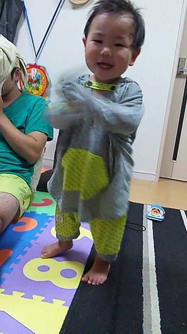 いとこのりっくんにサルエルパンツとパーカーを作ってみました来ている姿をメールしてくれましたりっくんイイ笑顔今度は虹也と叶羽とおそろいのアロハシャツを作るねおば・・・じゃないおねぇちゃんがんばるね
