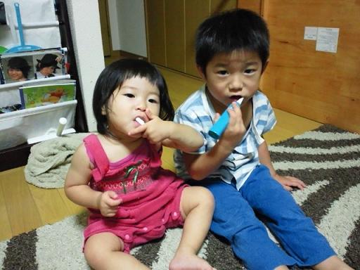 最近、保育園で自分ではみがきをするようになったら自宅でも「なっくん自分でやる」と言ってがんばって自分でやっていますその姿を見て叶羽もなぜか虹也の隣に座って仲良くはみがき自分達でするようになって磨いている時間も長くなったのでよかったぁ二人とも歯磨き嫌いではないのでたすかってます