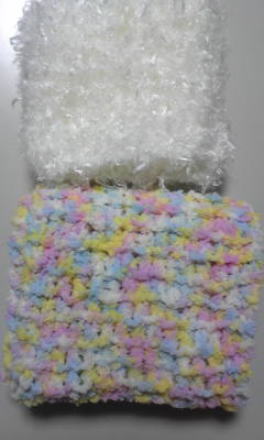「月の夜」は引き続き編んでいるのですが、ピエロさんの100円福袋で新しい糸を見たらどうしても編みたくなって編みました。白いのはロングファー1玉使いきり。一巻きして、片方に空けた穴に通して使います。パステルカラーの方はふんわりキッズ 2玉使いきり、2巻きできます。ふんわりキッズはふわふわの肌触りですごく気持ちいいです。子供や若い人にピッタリです。大人にはかわいいのとチープな感じが厳しいかも。ひざ掛けとかならいいかな。あと、単色か2色くらいのがあればもう少し使える幅がひろがるのかなって、キッズっていうくらいだから、最初から子供向けの糸ですものね。 ロングファーもチクチクはないです、悪くない。でも、定価のわりには安い糸に見えちゃうかもしれない。 この2本は東北に贈るボランティアマフラーにします。どちらもアクリルとナイロンだからんネットに入れれば普通に洗濯できるんじゃないかな。 福袋は自分では買わない糸が手に入るところがいいところ。今回もやっぱり楽しい糸が手に入って楽しいですね。 毛糸家計簿毛糸をポチしなかった日 7日 今日の消費は 3玉今年の消費は 252玉 今日の毛糸購入は 0玉 今年の毛糸購入は 497玉 在庫は 1318玉になりました。 今年の完成品は セーター(長袖) 1枚 セーター(半袖) 3枚 チュニック 3枚 ベスト 1枚 カーディガン 2枚 ジャケット 3枚 スヌード 4本 ネックウォーマー 1枚 ストール 1本 マフラー 10本 ショール 4枚 ラリエット 1つ 帽子 1個 手袋 1双 靴下 2足 バッグ 1個