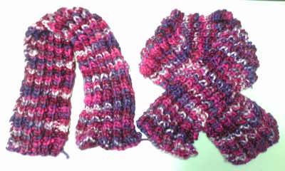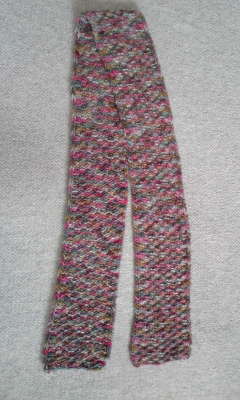 弟家族がやってきたということで、実家に急きょ行ってきました。おしゃべりしながらの編み編みは、シンプルなものということで極太毛糸でシンプルマフラー。ぐしゃぐしゃですが・・・ミニマフラーです。 編み図は、1本と2/3。毛糸が途中で終わりました。この糸、残り糸あったかななかったら、編み地を変えて幅を狭くして編みあげましょう。この糸は太いのでサクサク編めるから、編み直しもそんなに苦にならないのいっそのこと、両方ほどいて1本にしちゃってもいいかもしれないし。 これはボランティアマフラーにする予定です。