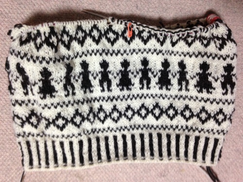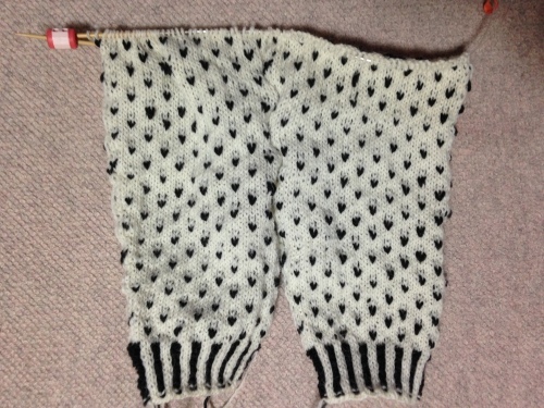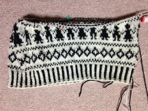苦手な編み込み模様を克服すべく編んでいる2枚目。私は手がゆるいので編み目が一定しないのかなと思い。今回は針の号数を1号上げて、きつめに編むことにしました。が、今度はわたり糸まできついのかちょっとツレてます。けれど、1目だけだとゆるみがちで、そこだけ目が大きくなる。うん、全体的に目がつれてる。もうすこしわたり糸をゆったりしよう。 今回は前後身ごろを続けて編んでます。この方が糸玉2個で絡む事もないし、脇も柄が合います。ただ、伸びやすくなるのかも。 寒い日が続くので冬物編んでいても違和感がないのですが、これから暖かくなってくるのでなるべく早く編み上げたいです。 毛糸家計簿毛糸をポチしなかった日 57日今日の消費は 1玉 ここまでで白2玉、黒1玉で3玉使用今年の消費は 75玉 今日の毛糸購入は 0玉 今年の毛糸購入は 43玉 在庫は1玉消費で 802玉完成品は靴下 1足帽子 8個 角座 1個セーター 2枚スカート 1枚カーディガン 2枚毛糸購入は今日までで 35341円編み本は1冊購入1404円 5冊で 7536円編み道具は 1269円布は8m50cm 9232円副資材は 2836円合計 56214円
