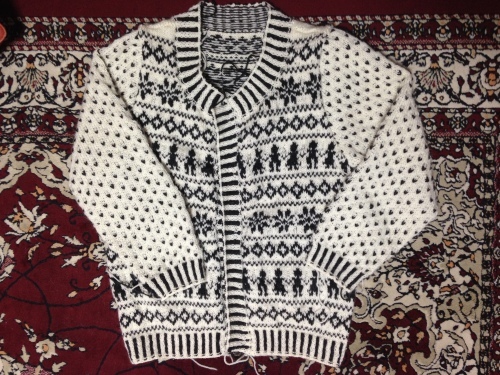 「毛糸だま」2010年冬号から編んでいた編み込みのカーデ編みあがりました。 デザインは水野陽子さん。使用糸はハマナカのピエール「アルパカウール」黒を11玉弱 赤を5玉ちょっと使用。使用針は3号4号ボタンもつけて完成。スチーム当てました。着てみたら、サイズはちょうど。丈はお尻の真ん中くらいです。 さて、次は何を編もうかな(*゚▽゚*) 毛糸家計簿毛糸をポチしなかった日 55日今日の消費は 2玉 ここまでで黒11玉、赤5玉で16玉使用今年の消費は 72玉 今日の毛糸購入は 0玉 今年の毛糸購入は 43玉 在庫は2玉消費で 805玉完成品は靴下 1足帽子 8個 角座 1個セーター 2枚スカート 1枚カーディガン 2枚毛糸購入は今日までで 35341円編み本は1冊購入1404円 5冊で 7536円編み道具は 1269円布は8m50cm 9232円副資材は 2836円合計 56214円