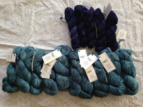 マラブリゴが届きました。上の紺色がマラブリゴレースのマリン下がマラブリゴ シルキーメリノ 411番グリーングレイ世界的に有名な毛糸メーカー!《MALABRIGO》マラブリゴ【649】Silky Merino(シルキーメリノ)[絹51%毛(メリノウール)49% 並太 約50gカセ(約137m) 全13色]毛糸ピエロ♪編み物/手編み/手芸ふわふわですよ。レースは、ショール。シルキーメリノはウェアになる予定。 毛糸家計簿毛糸をポチしなかった日 3日今日の消費は 0玉 今年の消費は 90玉 今日の毛糸購入は 0玉 今年の毛糸購入は 58玉 在庫は0玉消費で15かせ届いて 802玉完成品は靴下 1足帽子 8個 角座 1個セーター 2枚スカート 1枚カーディガン 3枚毛糸購入は昨日15870円購入今日までで 51211円編み本は 5冊で 7536円編み道具は 1269円布は8m50cm 9232円副資材は 2836円合計 72084円
