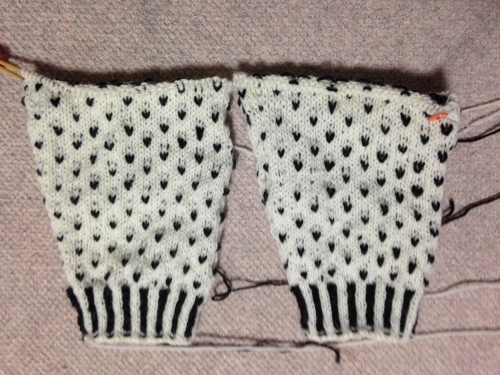 体調がいまひとつで、半日ダウン。午後には復調したのですが、あまり編み物は進みませんでした。下のダイヤ柄より上のダイヤ柄の方がくっきりしてます。糸を緩めに渡したので、目がつれてないんですね。本当は1枚の中では同じテンションで編まないとダメです。が、今回は修行ということでよしとします。引き続き頑張って編みます。 毛糸家計簿毛糸をポチしなかった日 58日今日の消費は 1玉 ここまでで白2玉、黒2玉で4玉使用今年の消費は 76玉 今日の毛糸購入は 0玉 今年の毛糸購入は 43玉 在庫は1玉消費で 801玉完成品は靴下 1足帽子 8個 角座 1個セーター 2枚スカート 1枚カーディガン 2枚毛糸購入は今日までで 35341円編み本は1冊購入1404円 5冊で 7536円編み道具は 1269円布は8m50cm 9232円副資材は 2836円合計 56214円