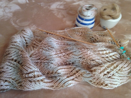 ウタゲとセイカで編んでいるブリオッシュ編みのマフラー、最後のプレーンのブリオッシュ編みができました。あとはゴム編み止めのみ!しかし、からみやすいモヘア糸、失敗してやり直ししたら汚くなりそう。もう眠たくなってきて手元もあやしいので仕上げは明日することにしました。明日には、完成です。 そして、明日の夕方、夫が中国から帰ってきます。しばらく真面目に暮らします。