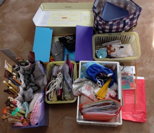 編み道具、特に編み針は油断するとすぐバラバラに。今日は、ちょっとお片づけ。では、全員集合。編み針はこれだけ。まず、かぎ針。一番古いのは、左の金属製のセット。太いかぎ針は100円ショップで買ったものが多いかな。一番使うのはエティモ。グレイの柄のセット。カラフルなセットはハマナカのらくらく両かぎ針の古いタイプ。数年前にこれでエコアンダリヤを編んだら指が痛くなってしまって、それ以来エティモです。ちなみに今のハマナカのらくらくはやわらかグリップになっているので、指は痛くならないと思います。持ってないので断言できませんが。水色のエティモはレース針。【ETIMO】かぎ針セット ロイヤルシルバー ケース付 【category4-13】今はピンクもあります。手編み、編み物、編み針セットETIMO Rose エティモロゼ グリップ付き かぎ針セット TER-001 手編み 編み物 編み針セットこちらはレース。ETIMO エティモレース針セット ロイヤルシルバー チューリップ【smtb-TD】【saitama】グリップがついたらくらく両かぎ針。あると便利なかぎ針のセット♪【A-273】ハマナカアミアミ両かぎ針らくらくハンディセット(グリップ付)(5本セット)2/0×3/0,4/0×6/0,5/0×7/0,8/0×10/0 各1本入り 毛糸ピエロ♪編み物・手芸・手編み 次は棒針。ニットプロと匠が多いかな。太いプラスティック製は100円ショップで買ったもの。種類はいろいろですが0号から12mmまでそろってます。多いのは6号~8号。4組くらいありました。20年以上前に縫ったキルティングの編み針入れをA4の書類入れ?みたいなのにいれてます。 続いては最近出番の多い輪針。左から時計回りに、チューリップ キャリーCロング付け替えではない輪針いろいろ ファイルに入れてます。ニットプロ付け替え輪針 こちらはCDケースに入れてます。針先は0号~10mmまでそろってます。ケーブルの長さは40cm~150cmまで。ただ、すべての号数ですべての長さがそろっているわけではありません。(そんなに必要ないですしね。)使用頻度が高いのはチューリップのキャリーCロング。ケーブルのジョイント部分がまわり、ケーブルがねじれないので使いやすいです。チューリップ carry C Long(キャリーシーロング) 切り替え式竹輪針セットニットプロは針先がシャープで編みやすいのがいいです。輪針大好き(*゚▽゚*) 最後は短針左のニットプロのドリームズのセットが一番好き。ただ、滑りがいいので気を付けないとときどき外れます。そんなときは竹の方を使います。☆ニットプロ dreamz ソックス編み用セット 両端編み針5本、5組セット90651 出しっぱなしの針も元の場所に戻りました。さて、この編み針 購入値段で考えると・・・10万越え?(´Д`)必要な針はそろっていると思われるので、編み針はこれで十分、ですね。