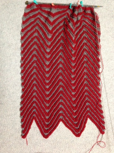 マリアンネ・イサガーさんデザインのスカイツリーは47模様、120cmになりました。あと60cm。グレイの色を変えたところは色は目立ちませんが、さすがに太さが少し違います。たぶん大雑把な私は気にしないと思いますが。この編み地、どちらも表になるし、裏と表で雰囲気が違うし、色も好きな色だし、編んでいて楽しいです。 完成までがんばります。