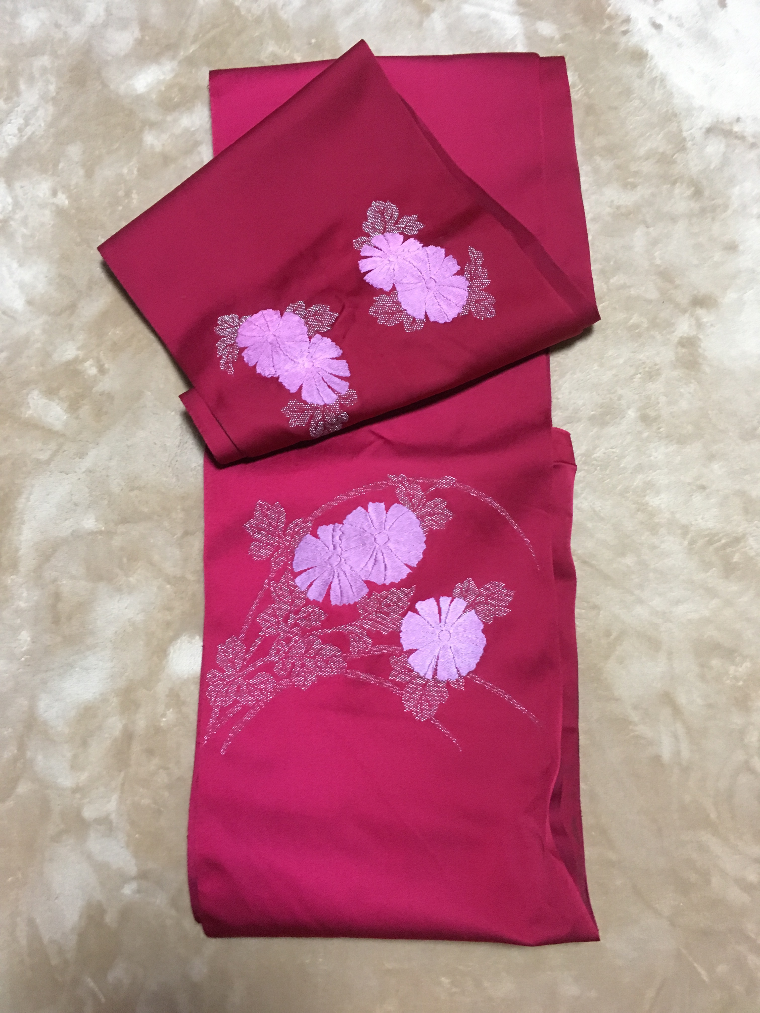 リサイクルショップの100円均一でコーナーで手に入れた名古屋帯、色落ちがひどくて何もつくれないのですが、次に作るものを試しにこれで作ってみようかと出してきました。しっかりした生地なので、カード入れとかぎ針ケースを作ってみようかと。これでうまくいったら本番にとりかかるつもりです。さて、どんなふうにつくろうか考えようと思います。