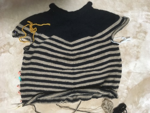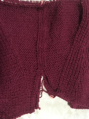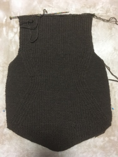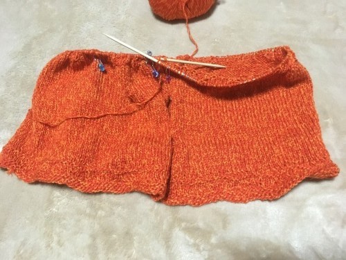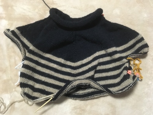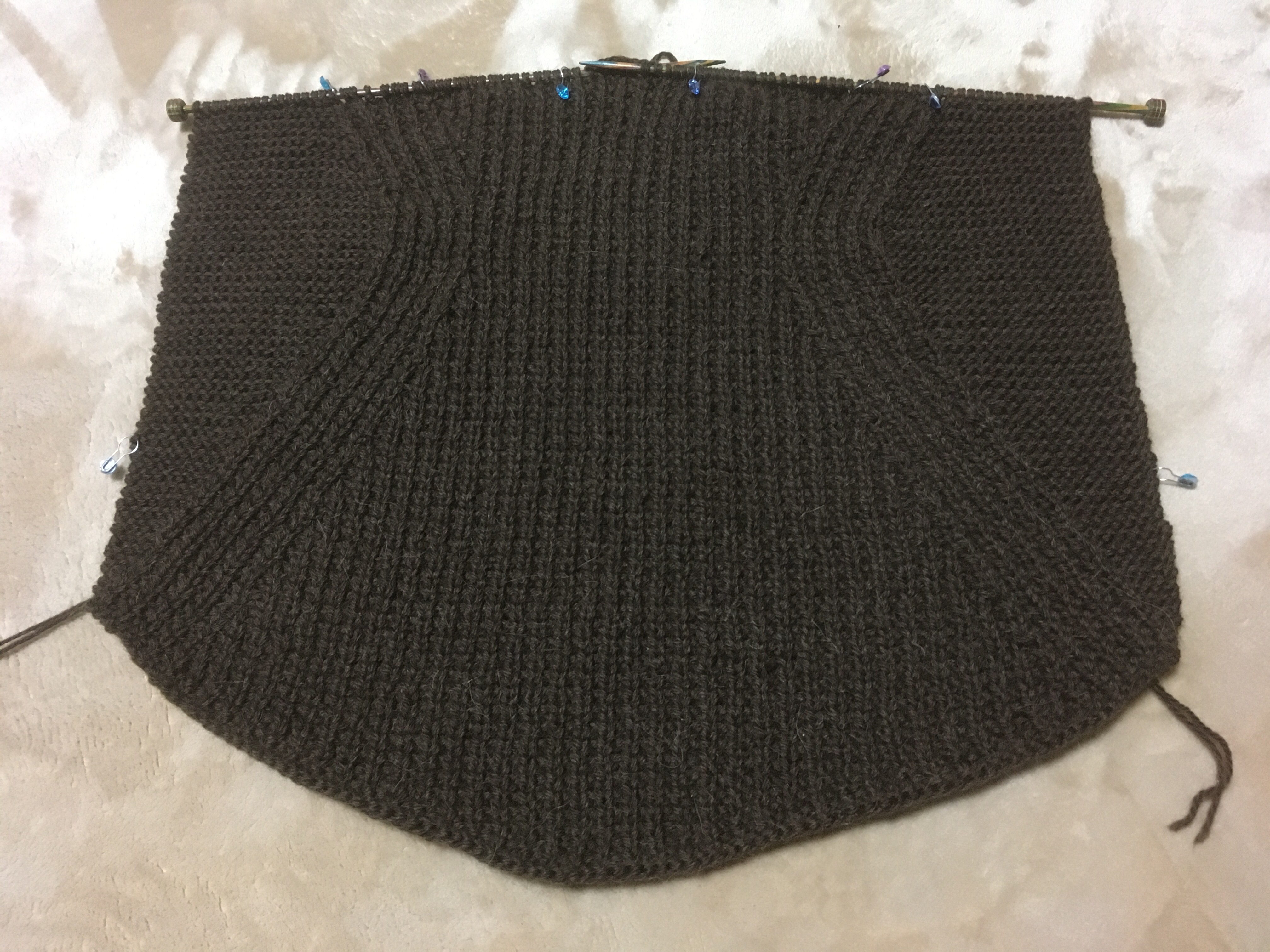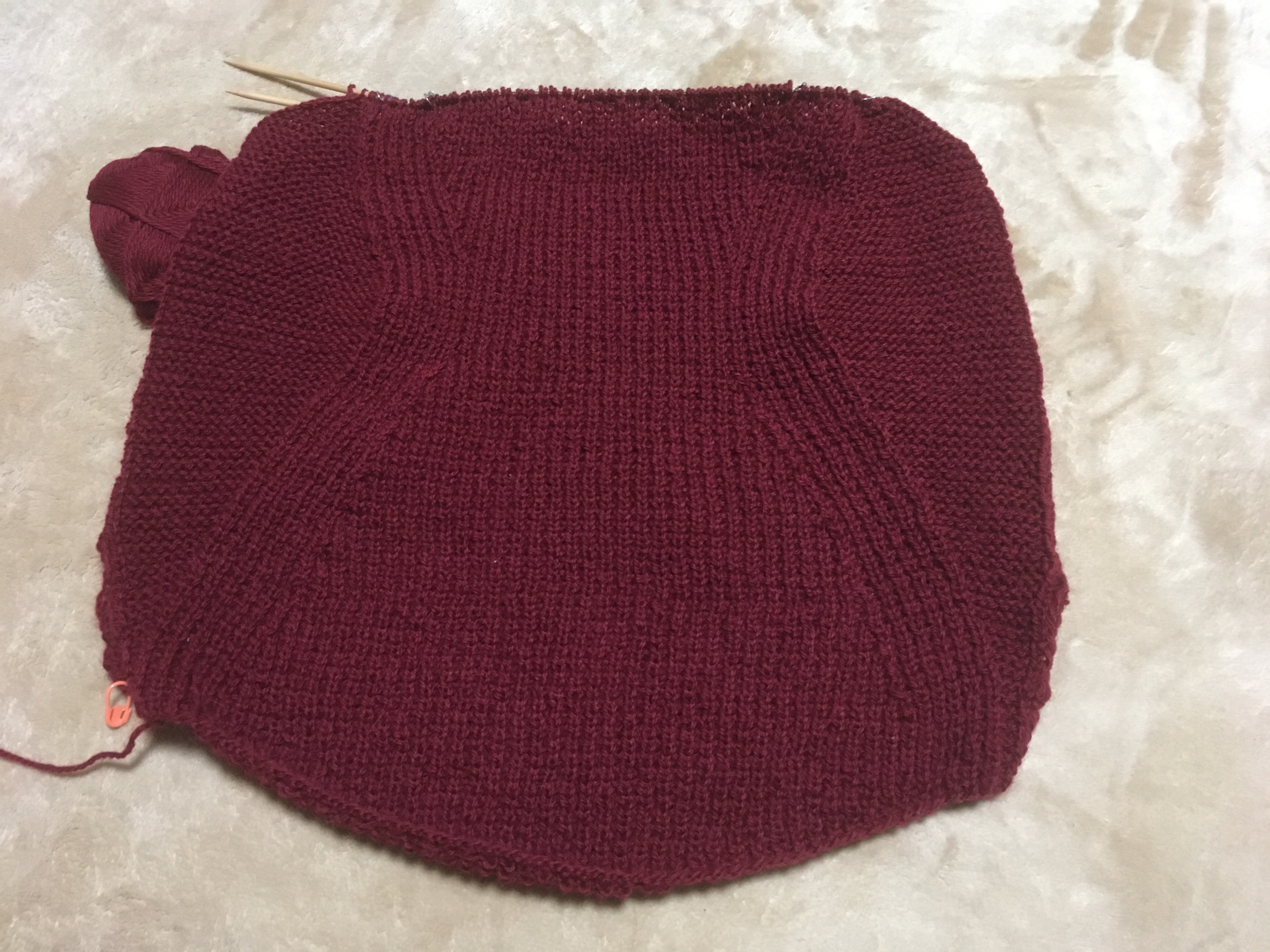 今日はあまり進んでません。が、身ごろと袖を分けました。今は身ごろを増し目しながら編んでいます。明日も明後日も外出の予定。しばらくあまり編めないかもしれません。ちまちまと進めていきます。
