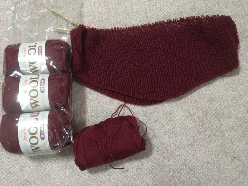 今日も外出していたのでちょこっとだけ編みました。あと10段ほどで身頃が半分編めます。だんだん目も増えるし、先は長いですね。ここまでで5玉使いました。