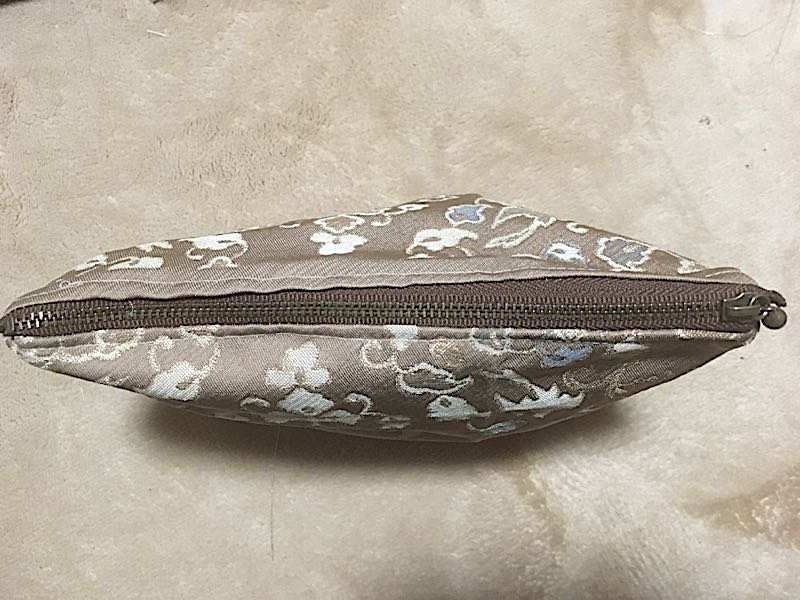 先日100円で買った、生地が弱っている帯地に接着芯を貼って数珠入れを作ってみました。 繻子の肌触りがなめらかできもちいいです。法事用サブバッグとこれ、いくつか作って母や親戚のおばさんたちにあげようかな?あ、縁起でもないのか。こういうのは何もなさそうな時に準備するのがいいっていうから今なら親戚に病人もいないし、いいかな?ま、親兄弟くらいが無難そうね。