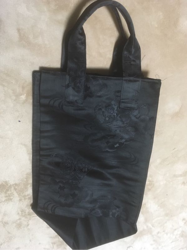 動画で見つけたグラニーバッグを作りました。作り方はこちらの動画からhttps://www.youtube.com/watch?v=Mbxc3kVBpx4先日解いた丸帯を使ってます。失敗したのは、柄が横になってしまったところ。裏地は中古で買った黒の縮緬。大きな別布のポケットを付けましたが、明らかに失敗なので後でとります。大きいです。箱ティッシュがすっぽりはいります。これもわりと簡単に作れたのでまた作りたいです。次はもう少し小さ目で。基本のバッグはいくつか作ってできたので、次はポケットや中仕切りのつけ方とかマスターしたいな。